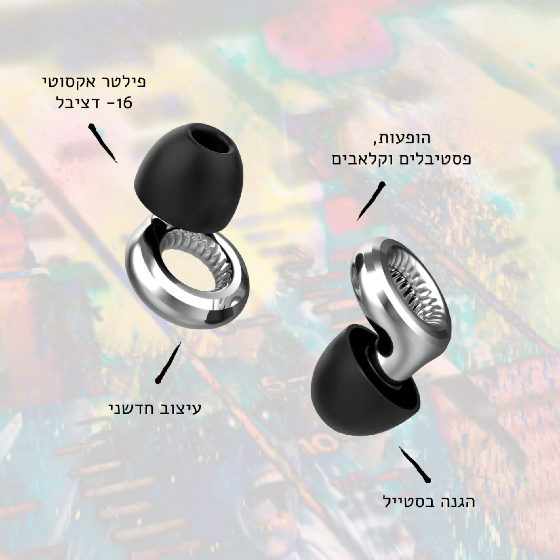כך מתקבל סאונד מאוזן וטבעי, שמאפשר לכם להנות מהמוזיקה בצורה בטוחה ונעימה, בלי אותם צלצולים מעצבנים שמרגישים אחרי מסיבה, חתונה, הופעה או כל סביבה רועשת