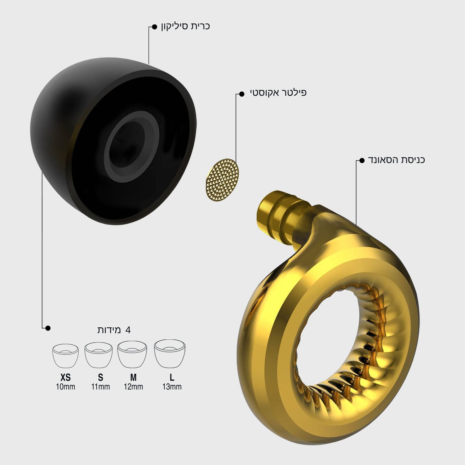 מסנני הסאונד שלנו מצוידים בפילטר אקוסטי ייחודי שתוכנן במיוחד כדי להגן על השמיעה שלכם מבלי לפגוע באיכות המוזיקה